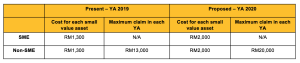 100% ACA is given to small value asset incurred for the YA 2020. It is proposed that the special allowance be enhanced as follows:-